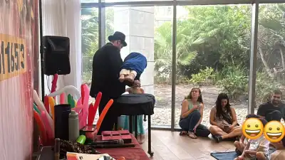 ואווו כל כך שימחת את הילדים!בחיים הם לא היו מרוכזים במופע ככה ועוד מעל שעה. תשמור לנו יום אחד לפני פסח הם ממש ישמחו לראות אותך עוד.ושוב אתה באמת מקצוען אמיתי זה היה ואוו אפילו לנו