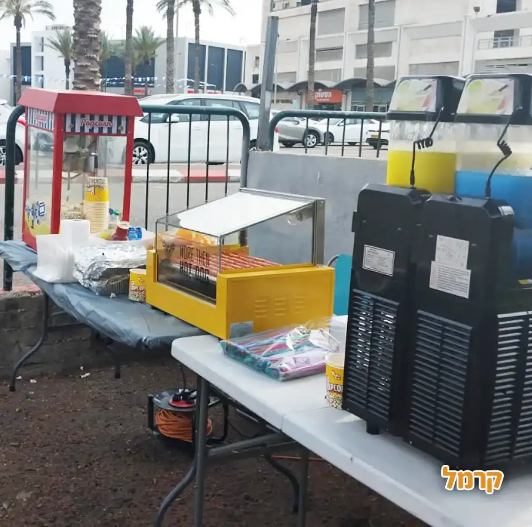 • דוכני מזון (פופקורן, נקנקיות, סוכר על מקל, ברד)