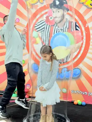 נבצע תרגילי איזון ושיווי משקל עם צלחות סיניות, נכניס את החוגג/ת בתוך בועת ענק, נבצע תרגילי אקרובטיקה, ניצור כתר מיוחד וצבעוני מבלוני צורות ועוד.