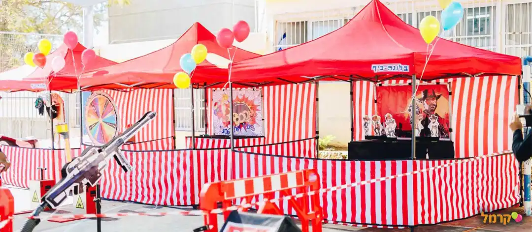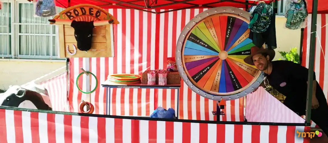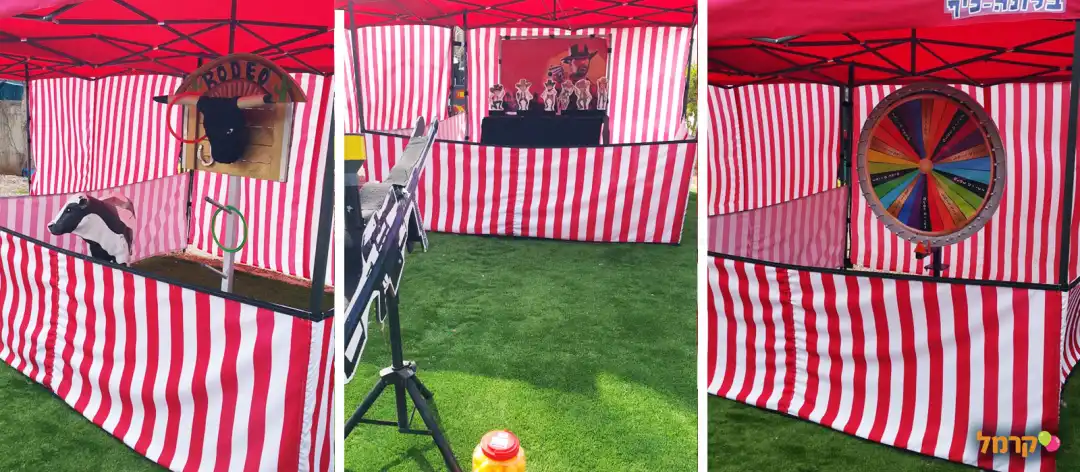 - עמדות יריד: פוצץ את הבלון, תא כסף, גלגל המזל, מירוץ שבלולים, קליעה למטרה שור, עמדת ירי, מוגלי