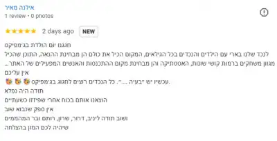 חגגנו יום הולדת בג׳מפיקס לנכד שלנו בארי עם הילדים והנכדים בכל הגילאים, המקום הכיל את כולם הן מבחינת ההנאה, התוכן שהכיל מגוון משחקים ברמות קושי שונות, האסטתיקה והן מבחינת מקום ההתכנסות והאנשים המפעילים של האתר… אין עליכם .עכשיו יש ״בעיה ….״. כל הנכדים רוצים לחגוג בג׳מפיקס🥳🥳🥳 תודה היה נפלא הוצאנו אותם בכוח אחרי שפיזזו כשעתיים אין ספק שנבוא שוב ושוב תודה ליניב, דרור, שרון, רותם ובר המהממים שיהיה לכם המון בהצלחה