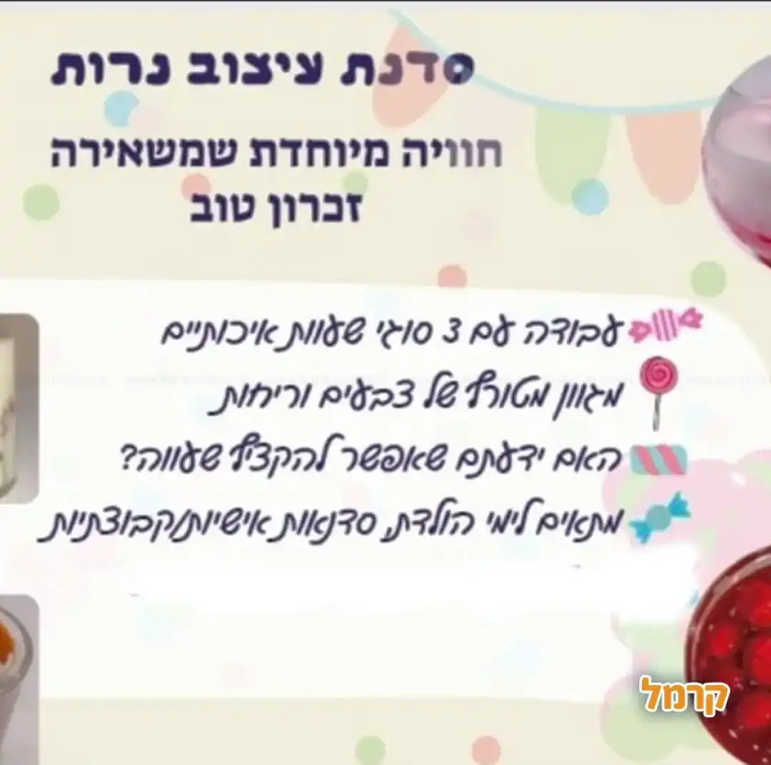סדנת יצירת נרות: (הסדנה מותאמת לגיל החוגג/ת)