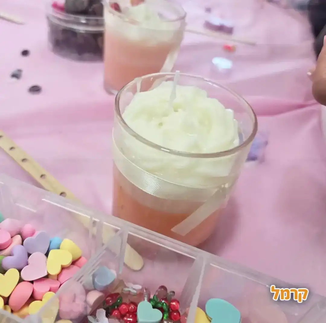 לאחר שהשעווה מתקררת, נעבור לחלק הכיפי והיצירתי במיוחד: עבודה עם שעווה מוקצפת, בעלת מרקם של קצפת רכה. נזליף, נעצב, נוסיף אלמנטים וקישוטים, וניצור יחד נר מעוצב, ריחני ומלא אופי.