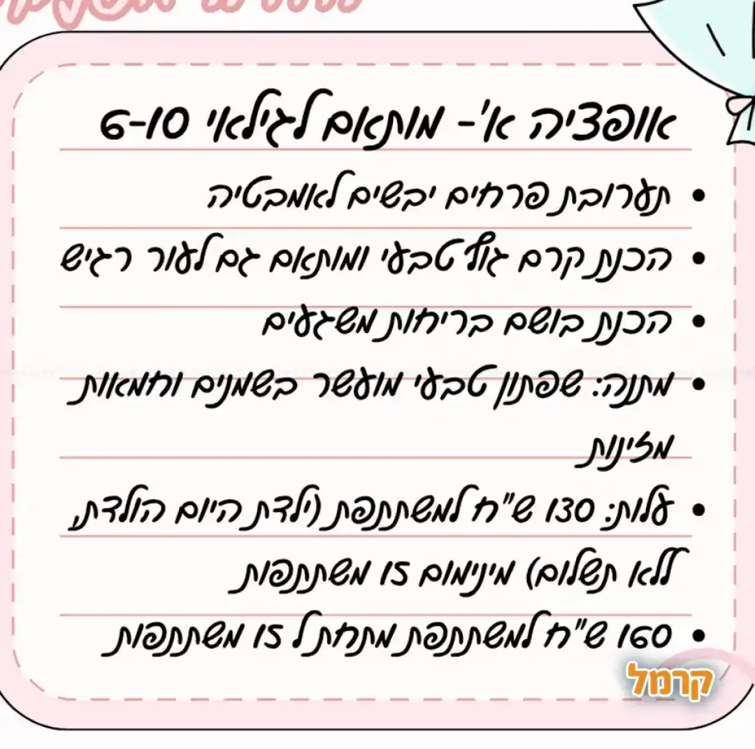 הפעילות למינימום 15 משתתפים - 130 ש"ח לכל אורח/ת