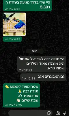 היי, רציתי להגיד ממש תודה על ההפעלה אתמול, היה מיוחד ממש! כולם נהנו כולל המבוגרים. העברת את הפעילות בצורה מרתקת וסוחפת. היו הרבה סוגי בעלי חיים והילדים היו בעננים. בהחלט...