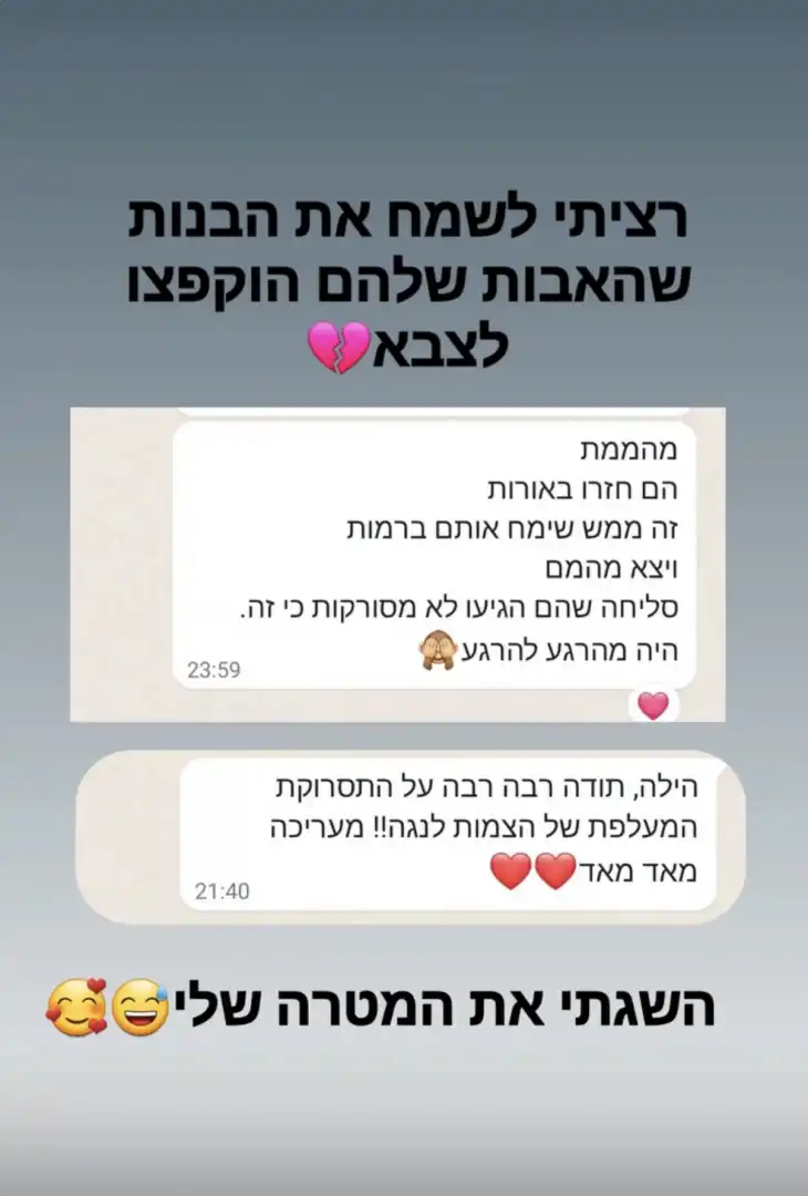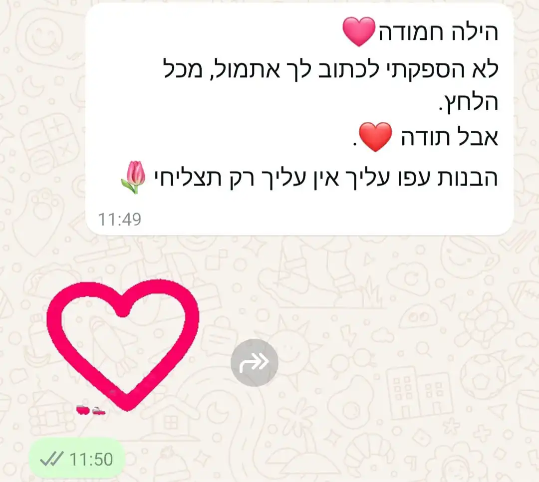 לאחר שהכרנו אני עושה לה צמה בדיוק לפי בקשתה, שהחברות יגיעו היא תחכה להן חגיגית עם הצמה שלה.