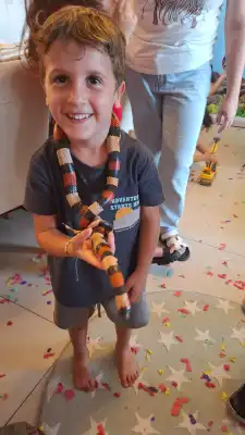 רוצים לכתוב כאן תודה לאלעד על פעילות אקטיבית מלמדת ומגוונת. הכרנו בעלי חיים שונים. ליטפנו וראינו מקרוב יצורים קסומים. אלעד מעביר את הפעילות בסבלנות ובנועם....