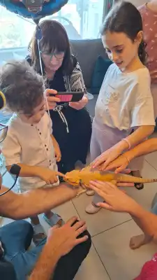 פגישה מקרוב עם חיות מדהימות: שממית מנומרת, נחש חנק, טרנטולה, שרקן מתוק, תיקנים מפתיעים ועוד... הילדים שומעים, צוחקים, לומדים ונוגעים – כל ילד/ה מרגיש/ה גיבור/ה.