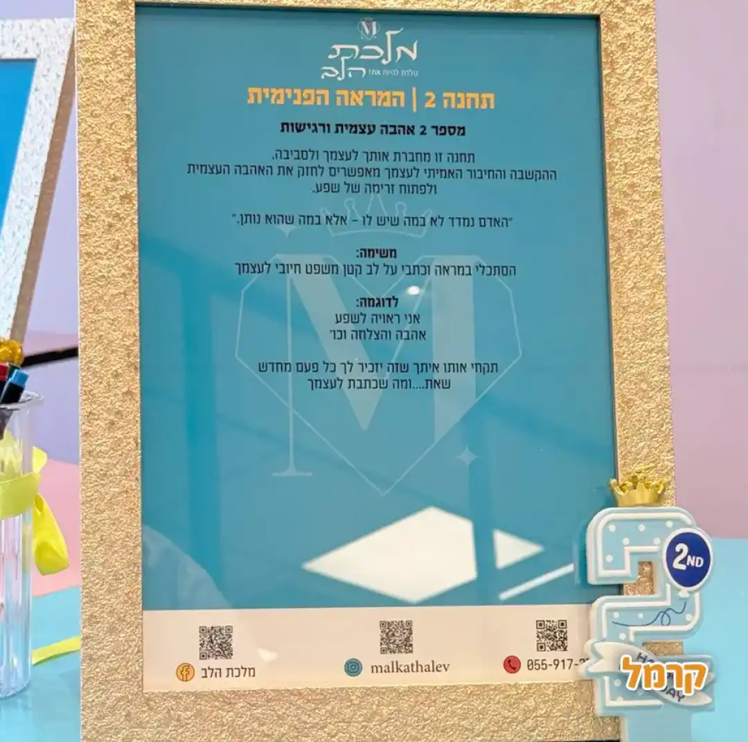 הלב בלוגו שלי נושא את המסר הזה: במרכזו האות מ׳ (מלכה, מלייב, מי שאני) עטופה בלב יהלום וכתר – כי כל אישה היא יהלום מלכותי, שנולדה בזמן מדויק עם ייעוד ברור. היקום שולח לנו כל הזמן סימנים. הכול כתוב – רק צריך לדעת לקרוא, להרגיש, ולזכור מי את באמת. כשיצרתי את הלב הראשון, התעורר בי רצון עמוק להבין את כל הסימנים שהיקום שולח. כך הגעתי לעולם המופלא של נומרולוגיה רוחנית וטיפולית – עולם שמאיר כל תאריך לידה, כל שם וכל מסלול חיים באור חדש ומדויק. הבנתי שכל אחת מאיתנו הגיעה עם חוזה נשמתי – עם סיפור, עם שליחות, עם שיעורים ומתנות. ודרך המספרים, אני כאן כדי לעזור לנשים להתחבר לעצמן, לגלות מה חוסם אותן, מה הכוח הפנימי שלהן, ואיך להתקדם בדרך שהן באמת רוצות.
