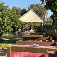 תפוזים טעימים, קוטפים ואוכלים ישר מהעץ. במקום יש פינות ישיבה נעימות וגם פעילות של סחיטת מיץ מהתפוזים.