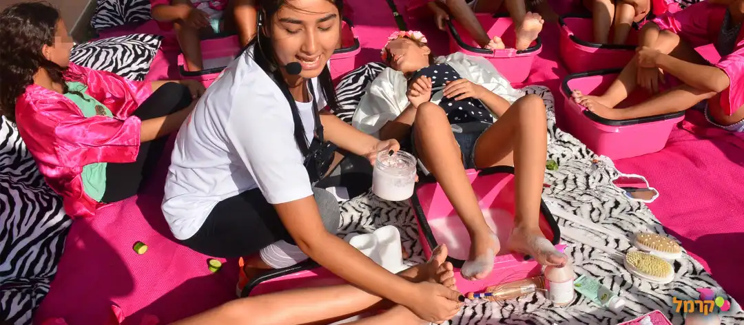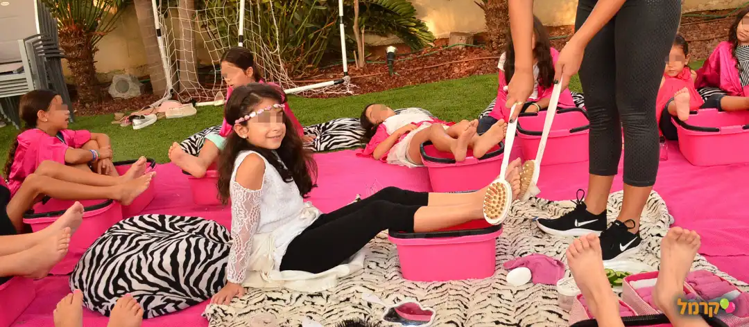 נשכשך רגלים בגיגית מים חמימים ונתפנק יחד עם ילדת יום ההולדת.