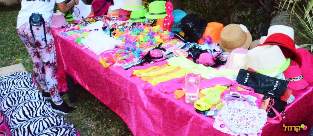 הגיע הרגע הגדול המוזמנות וכמובן ילדת היום הולדת מוזמנות לשולחן אקססוריז להתגנדר לקראת תצוגת האופנה ע"י מבחר עשיר של אביזרי אופנה.