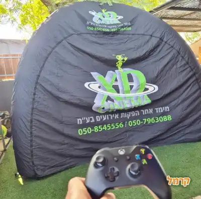 * מחוץ לקרוואן מסך ענק כך שמי שנמצא בחוץ יכול לחוות יחד את הצחוק והפחד של החברים שצופים בסרט!