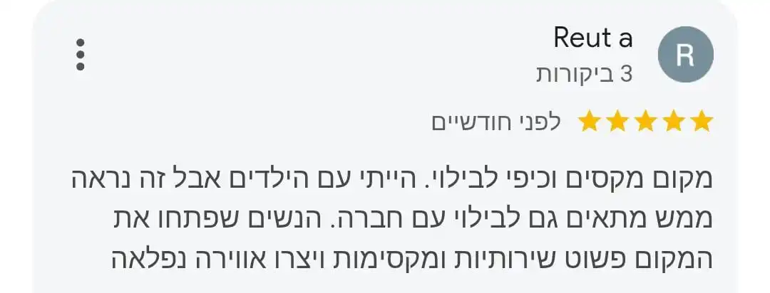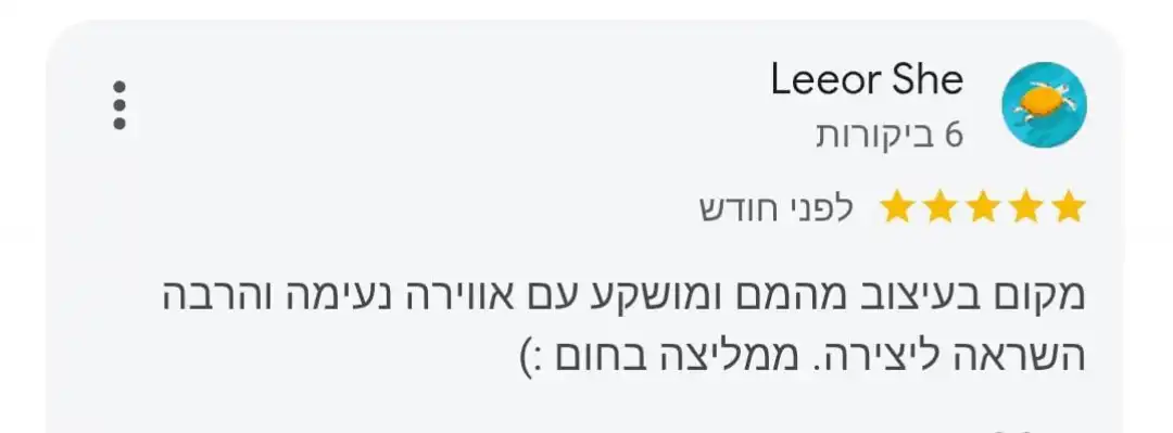 במקום שלנו יש גם: פינת מנוחה נעימה | מוזיקה טובה | קפה על חשבון הבית | שירותים וחניה בשפע.