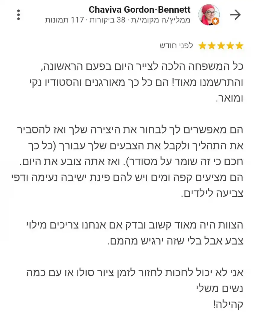 - הפעילות הינה למשך כשעתיים ועלות הפעילות היא לפי מחיר הכלי שבחרתם לצבוע.