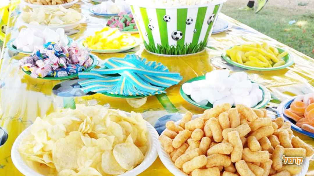 הפעלה + צמר גפן מתוק + עמדת פופקורן + פיצות + שולחן מתוקים + שתיה קלה + עוגה