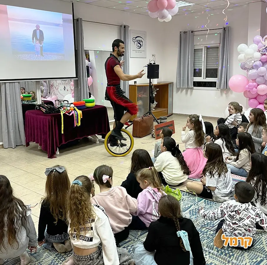 הפעלה הכוללת: מופע קרקס, ג'אגלינג, אקרובטיקה וקסמים מפתיעים שהילדים אוהבים, כל זה בשילוב קטעי סטנד אפ בהתאמה אישית.