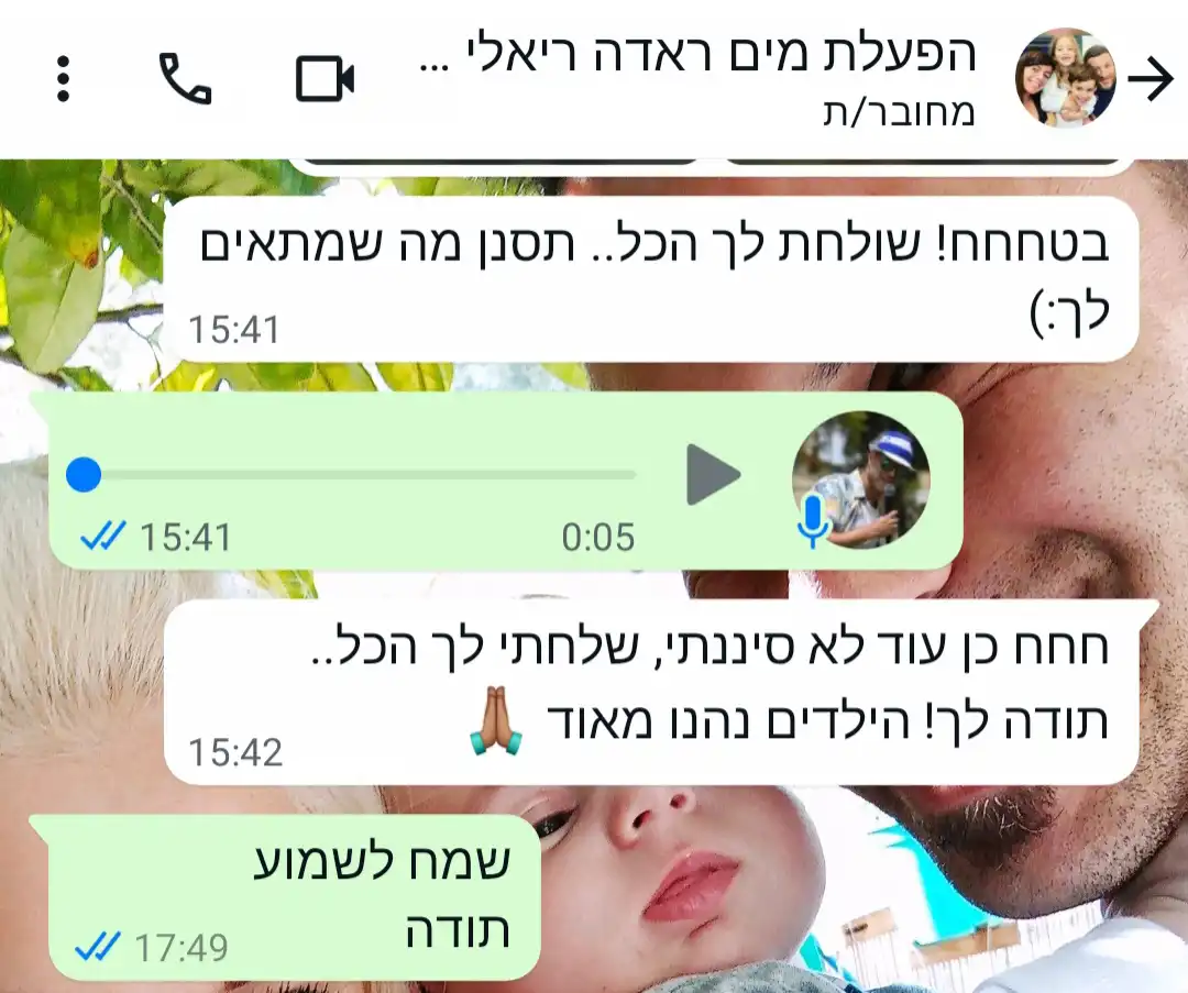 • במידה ואין חיבור למים אנחנו דואגים לספק את המים במלואו.