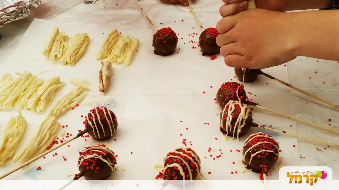- בגילאים קטנים יותר נמלא את הפרלינים בסוכריות/ מרשמלו,