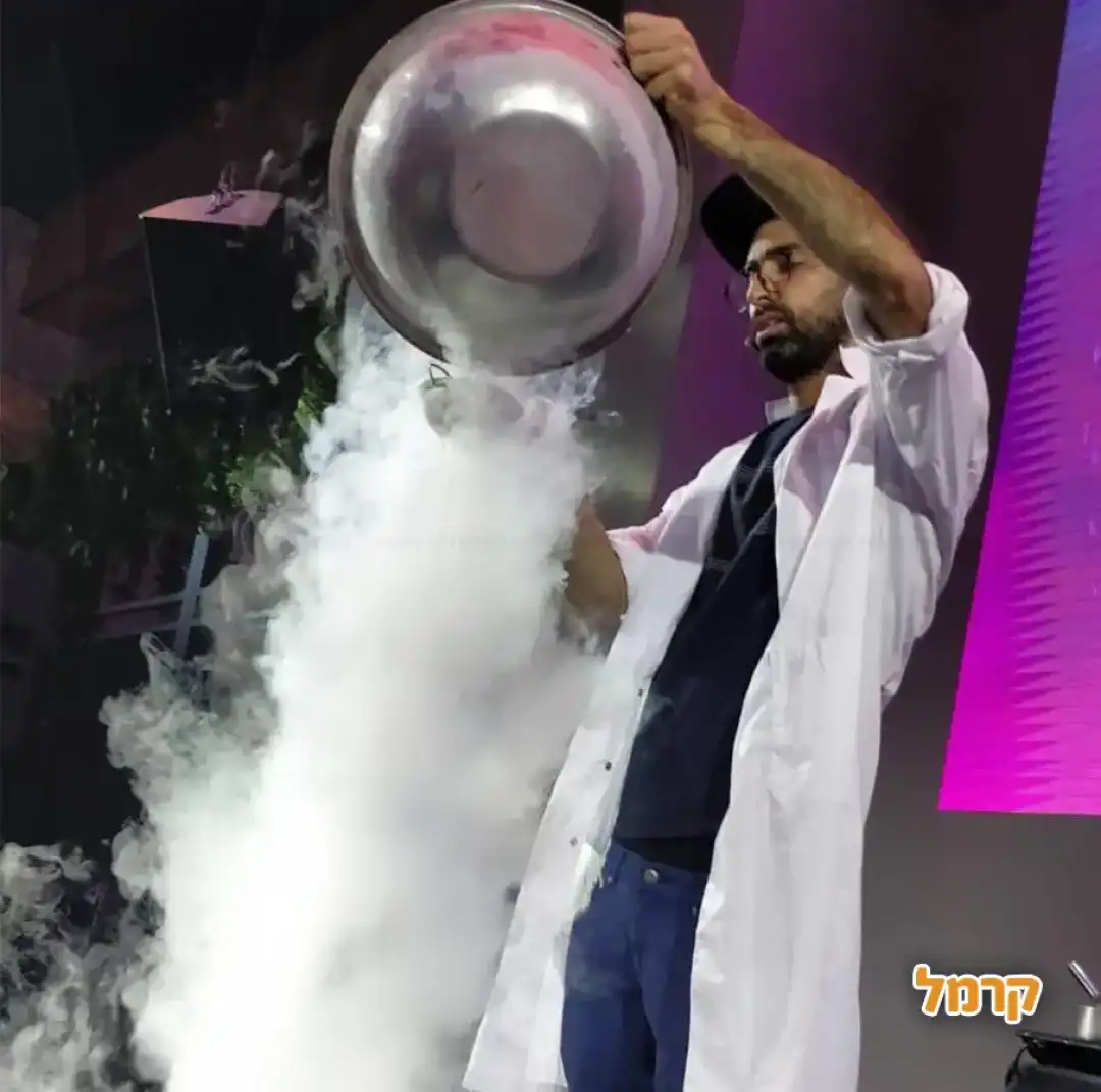 - אני מגיע עם כל חומרי הגלם, הציוד והאביזרים הנדרשים: ציוד בישול מולקולרי, כלי עבודה, חנקן נוזלי, חומרי גלם לבישול.