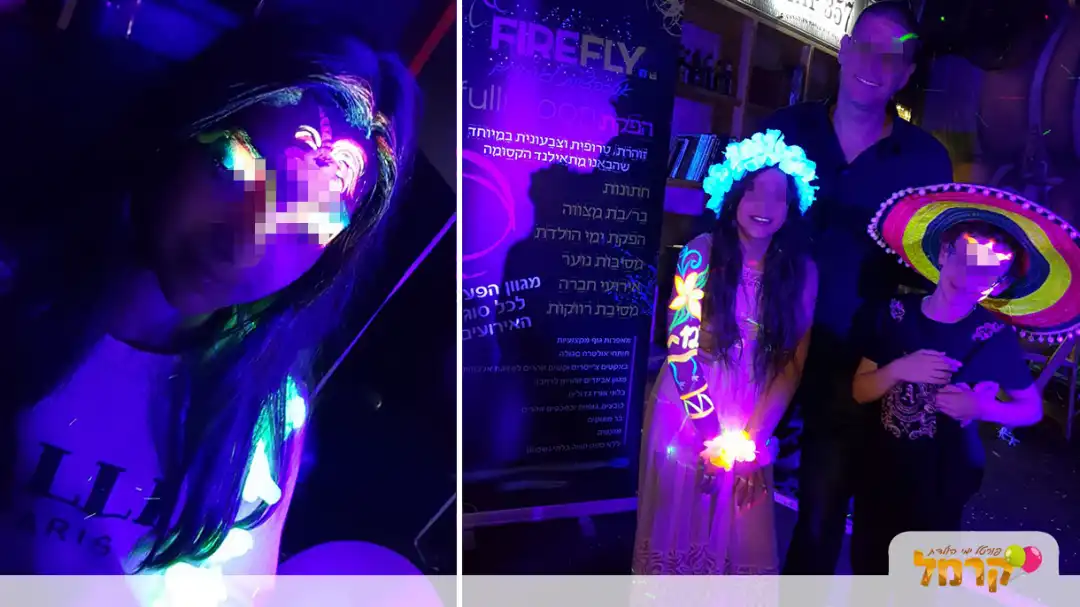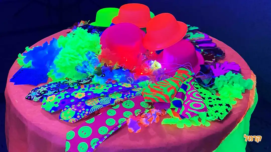 - מגוון אביזרים זוהרים ונוצצים לכל הילדים: כובעים, עניבות, סטיקלייטים ועוד