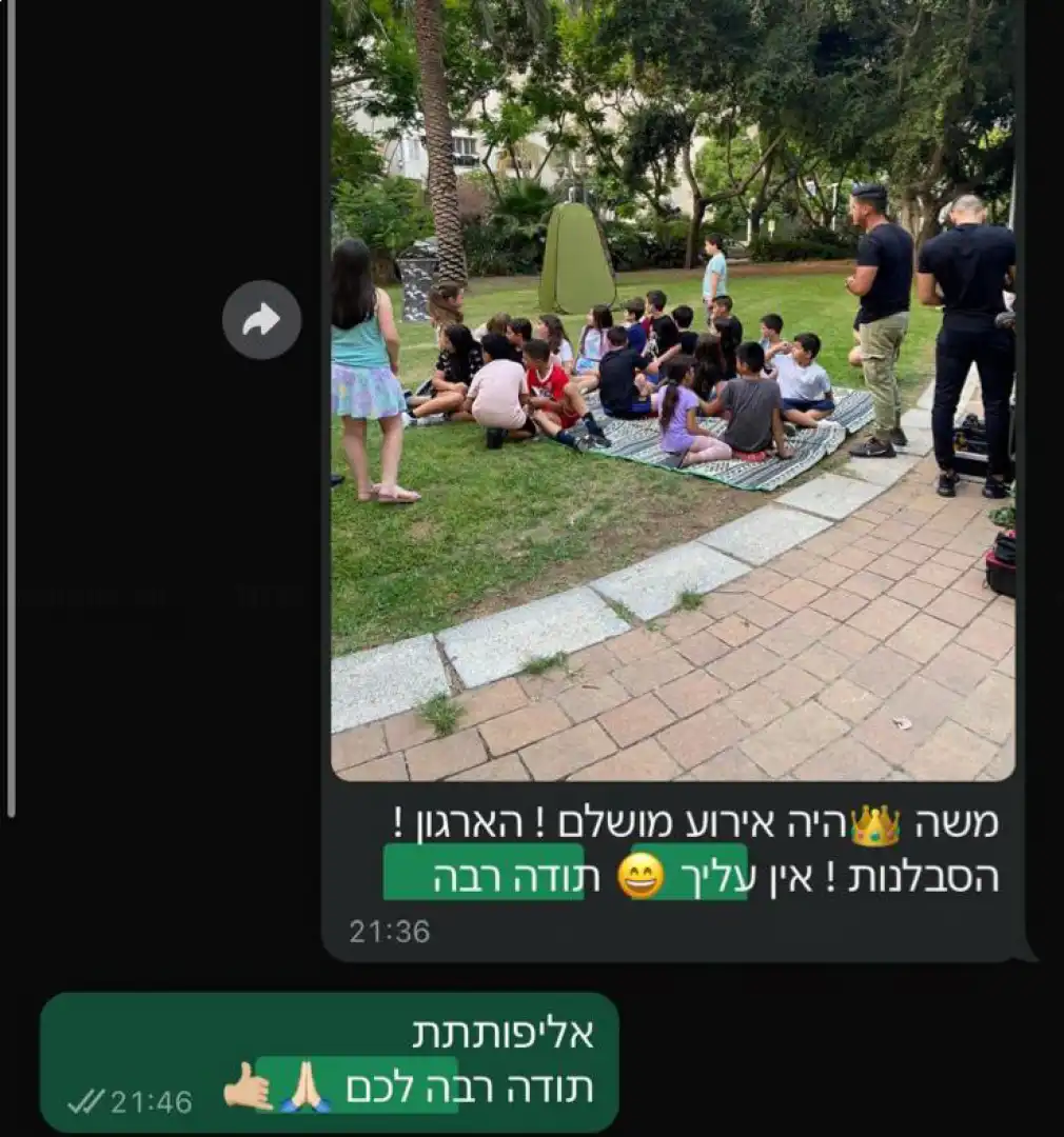 טרם ההפעלה – הצוות שלנו יגיע אליכם 45 דקות לפני הזמן כדי לארגן את המקום וגם להכיר את ילדת יום ההולדת.