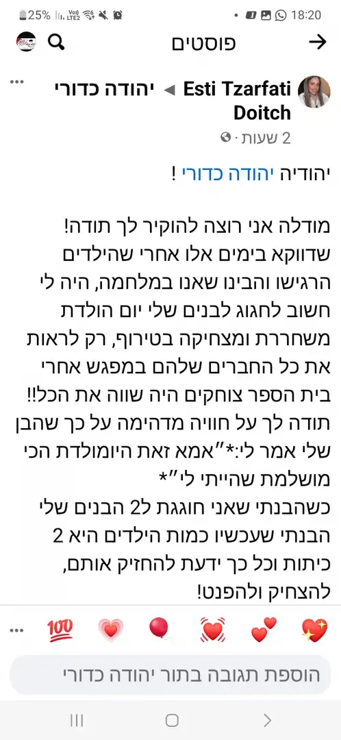 הילדים היו מופתעים וממש התחברו אליך! אתה ממש משקיע שזה חשוב והחגיגה היתה ממש שמחה לא נשכח אותךךךךך