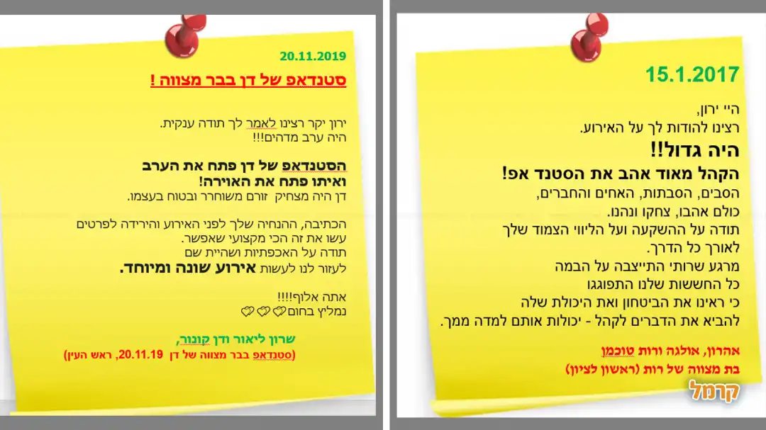16.2.2022 הי ירון, מעדכנת אותך שרוי היה אלוף אתמול, הוא עשה את הסטנדאפ מושלם ולא הפסיק לקבל מחמאות וכמובן מחיאות כפיים ! תודה על הכל ! ליאת, בר מצווה של רוי, ישוב נעלה.