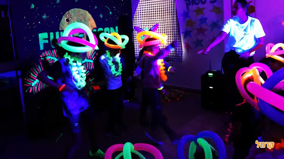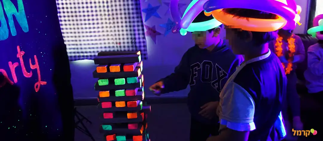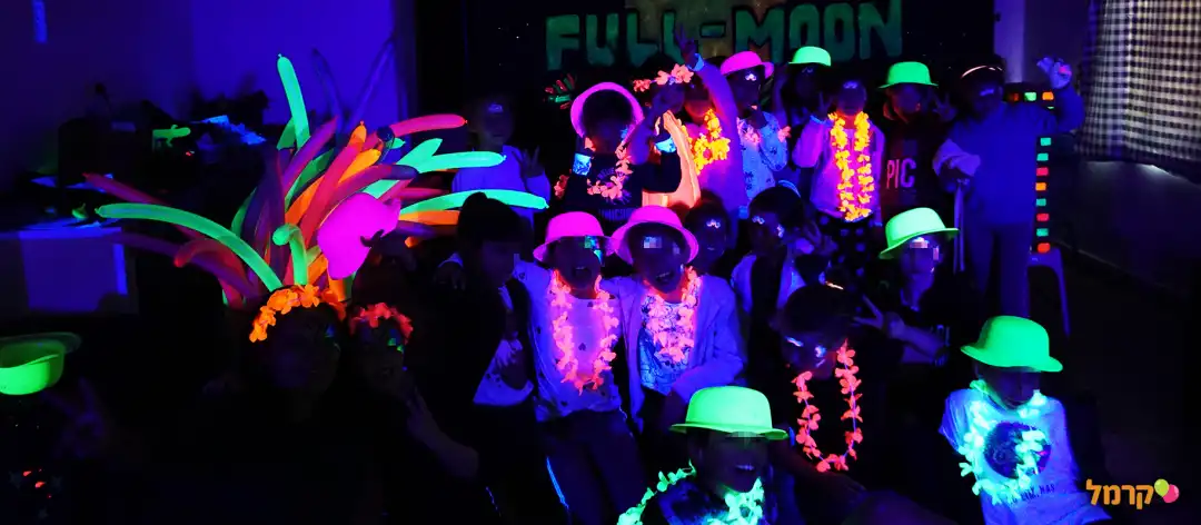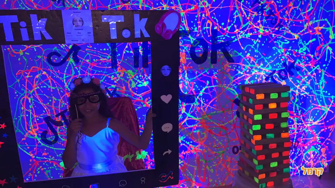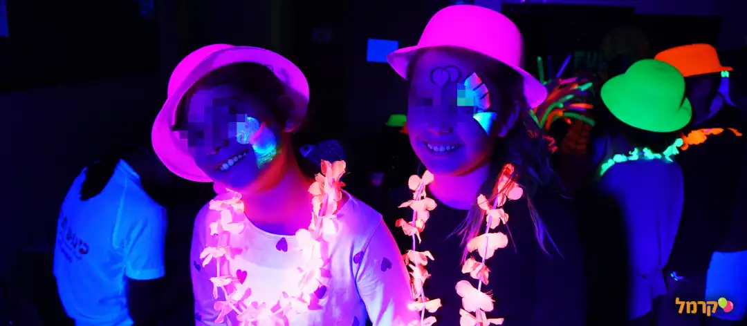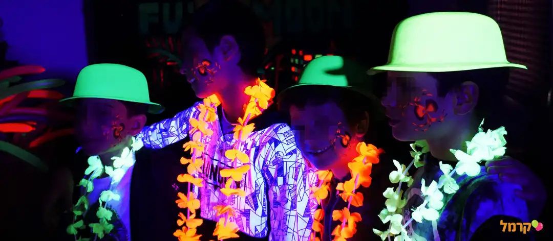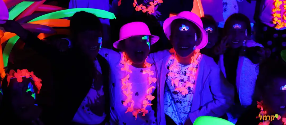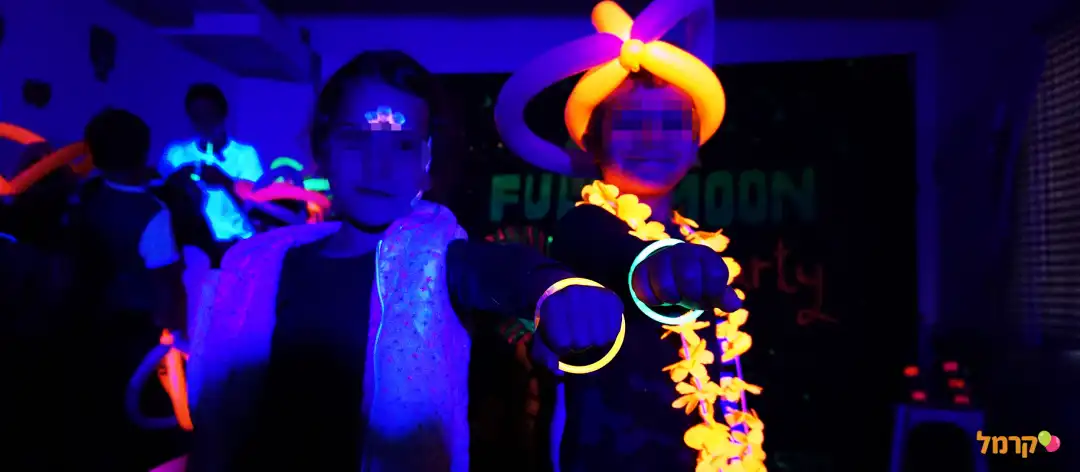 חוויה זוהרת במיוחד עם תפאורה זוהרת, אביזרים זוהרים ומדליקים, משחקי ענק מטריפים ואפשרות לשילוב LOL | סליים | TIK TOK.