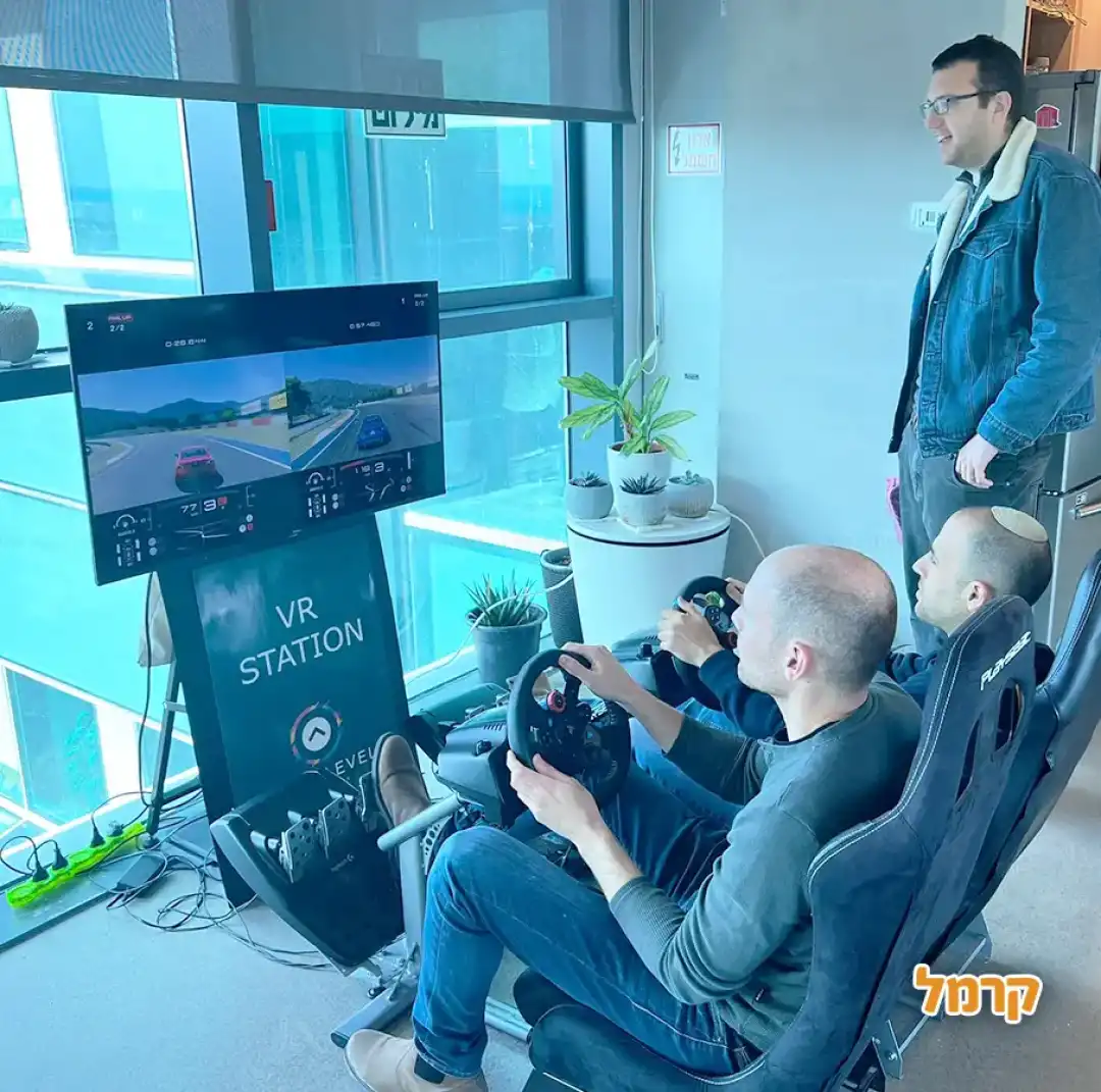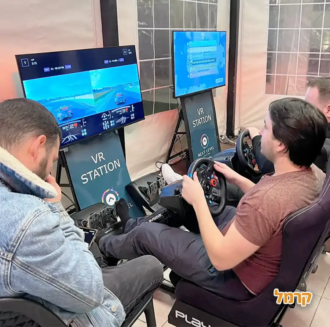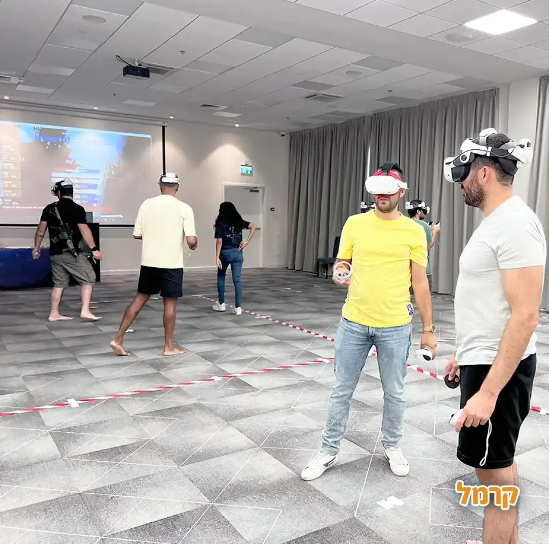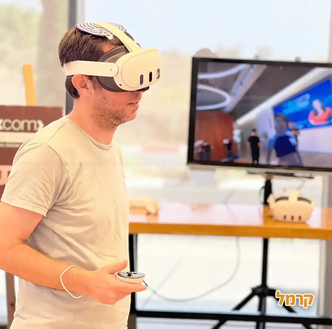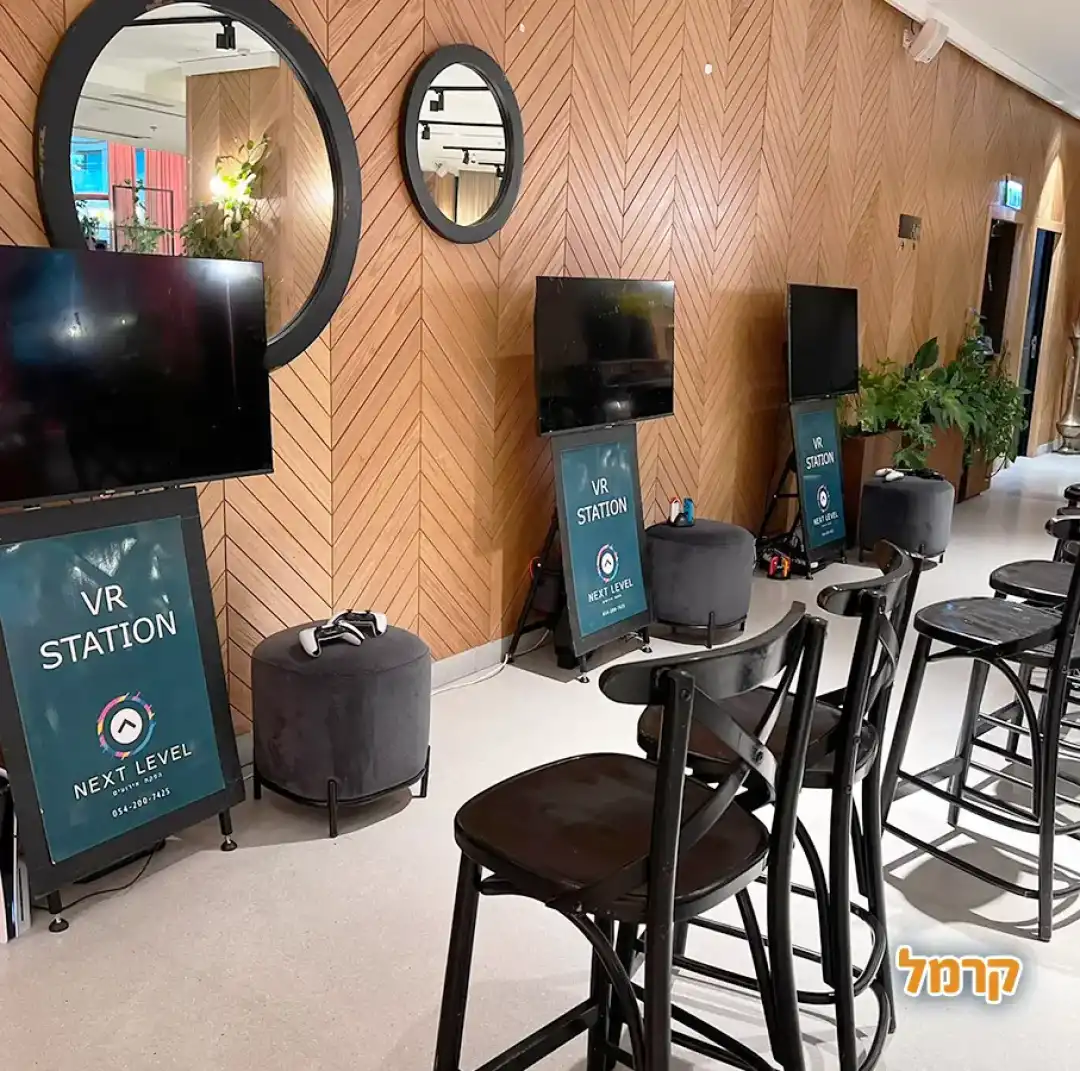- עמדות מציאות מדומה ומסך מיוחד שמשקף את הפעילות