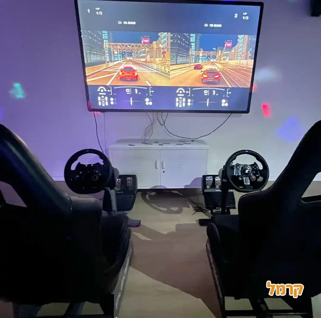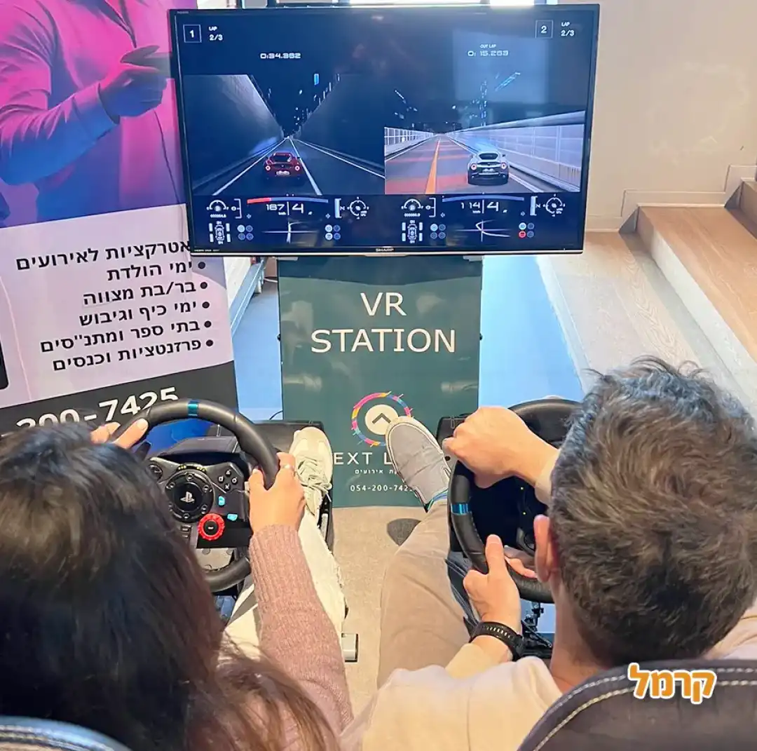 - עמדות סימולטור מרוצים זוגיות שניתן להתחרות בהן בתוך מסלול מאתגר