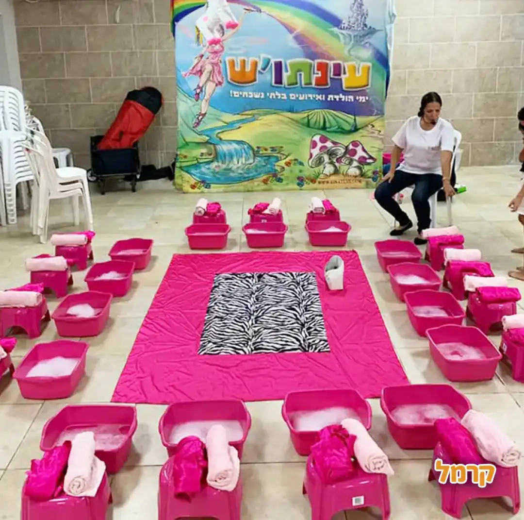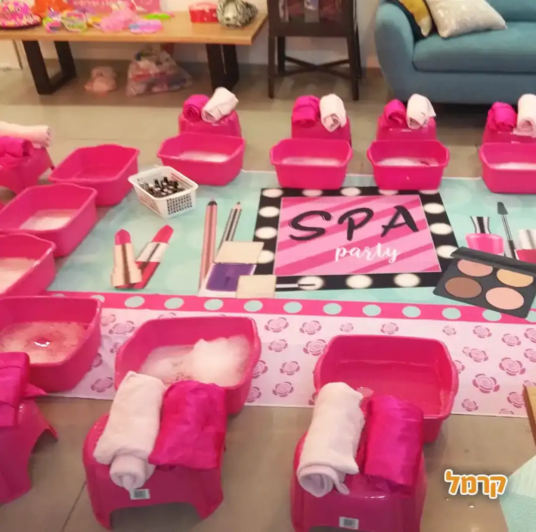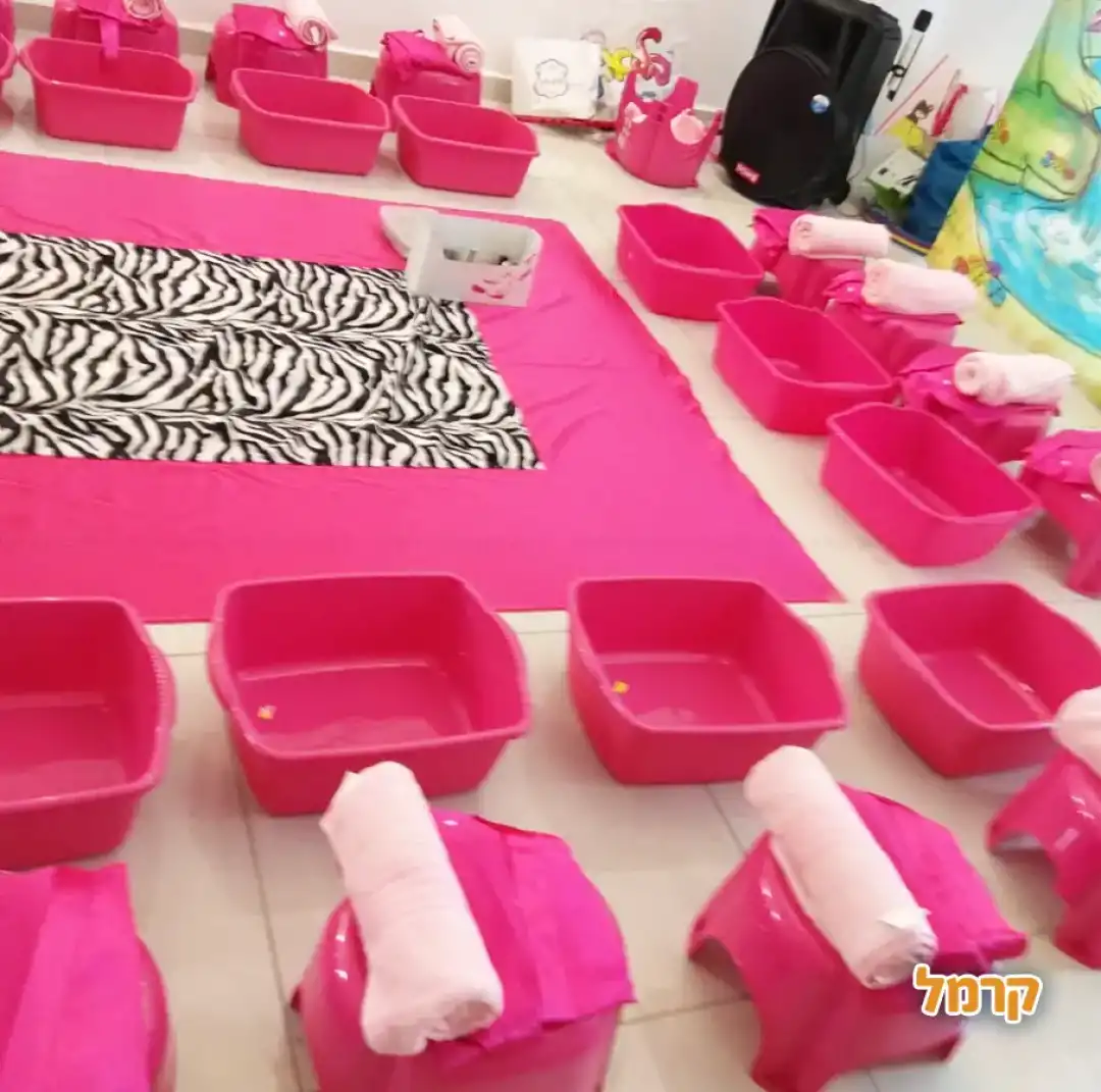 ההפעלה: לכל אחת תחכה עמדת ספא אישית הכוללת: גיגיות עם מים חמימים וקצף ריחני.