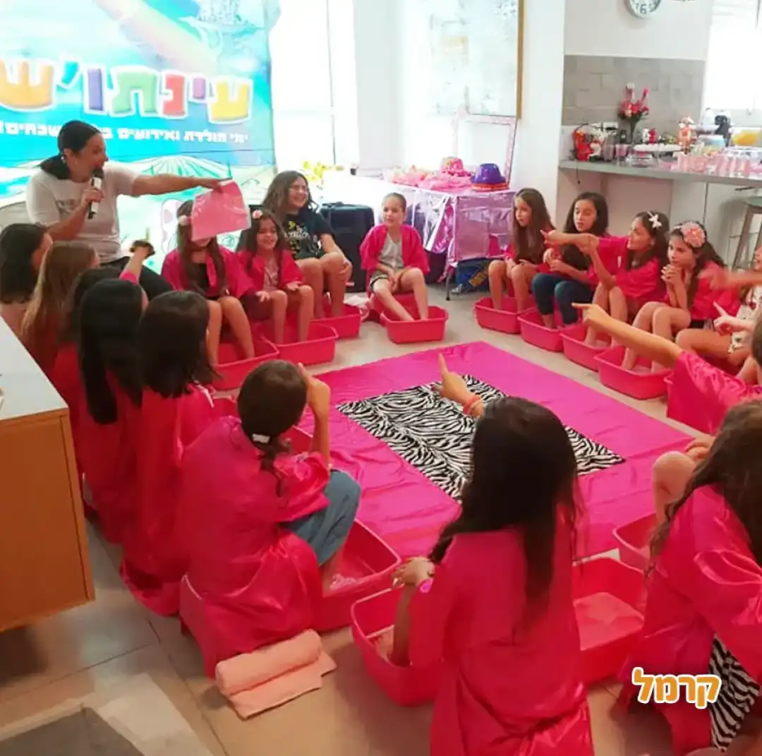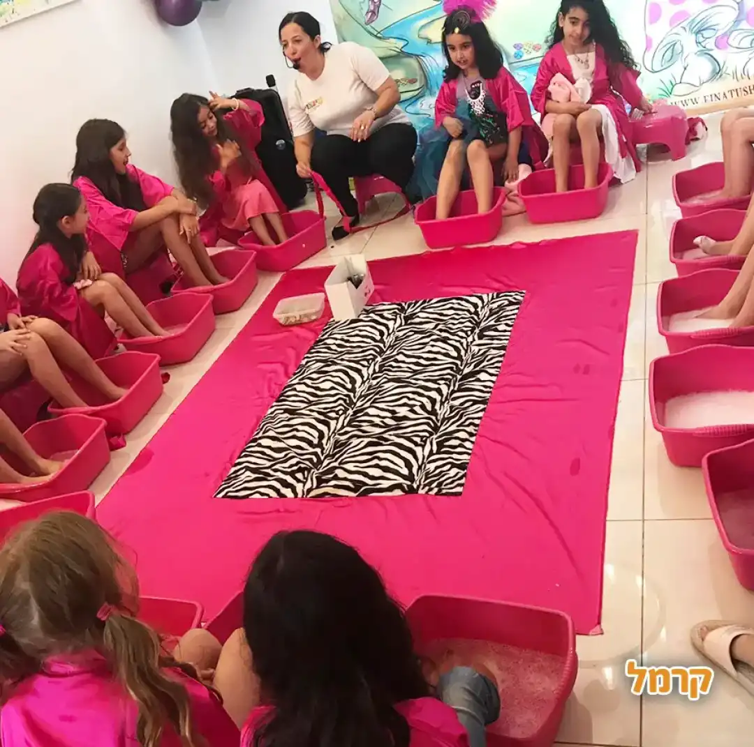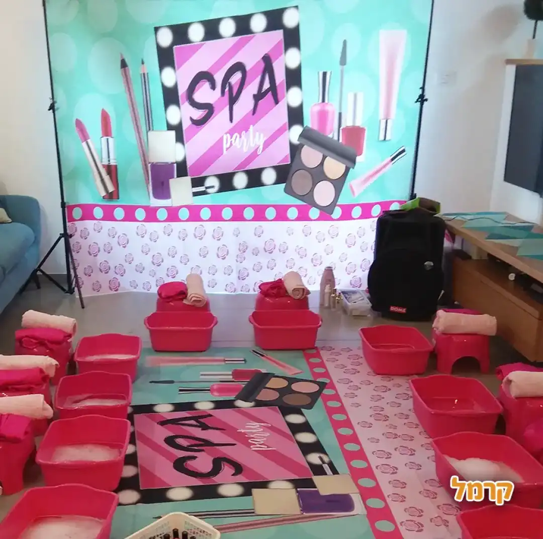 ההפעלה: לכל אחת תחכה עמדת ספא אישית הכוללת: גיגיות עם מים חמימים וקצף ריחני.